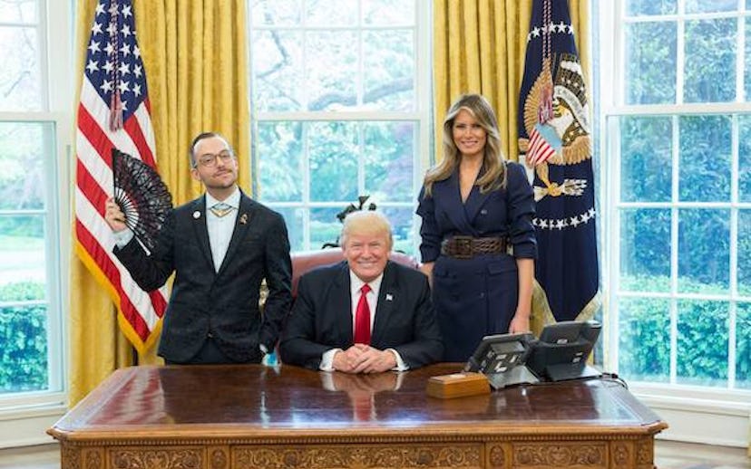 As it turns out, Trump actually loved the fan and told Giannoppoulos that he has "great style." Although he was told to put the fan away as he was ushered into the Oval Office for his private picture with the president and his wife, Giannoppoulos ended up asking the president if he could use it just before the photo was snapped. And perhaps surprisingly, the president said, "Absolutely, go for it." And results? C'est magnifique.