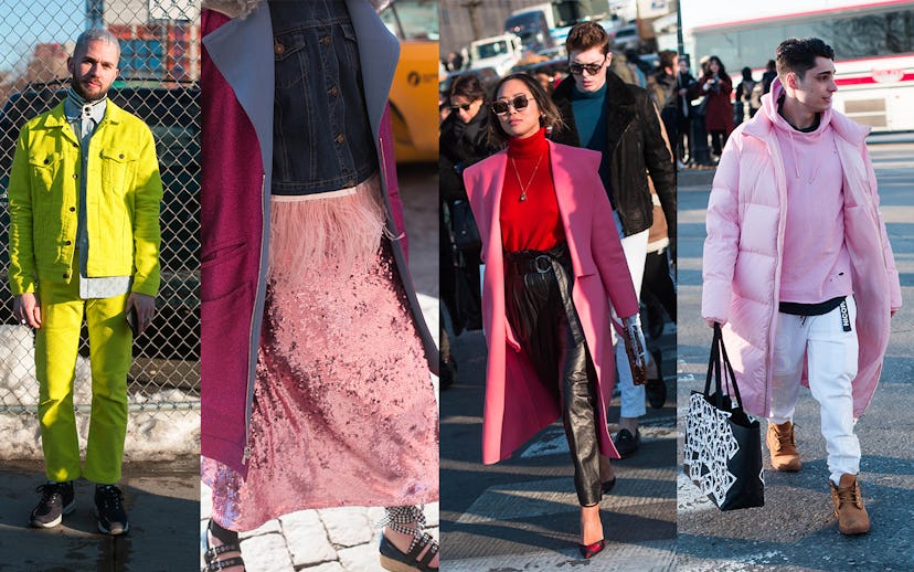 With yesterday being Valentine’s Day and all, we definitely saw the stars of the street style game showing their saccharine side. Displays of pink and red popped up everywhere, from single accessories to full-on looks. Turn out, fashion can be romantic, too! With the weather finally warming up "slightly," we saw a lot less bundling up, and a lot more lessons in layering. Spring is almost here…