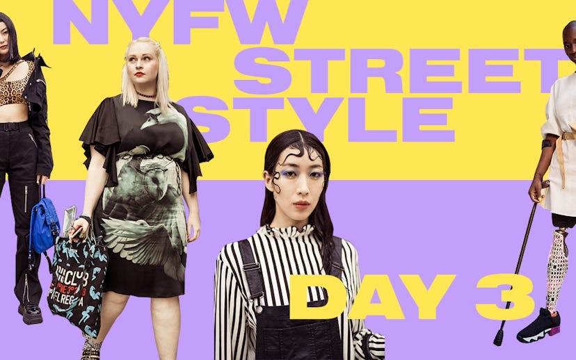 The weather was, as our fashion and beauty editor, Jenna Igneri, remarked to me, “a brisk 77 degrees" on day three of NYFW. So, naturally, everyone brought out their outerwear for the sharp drop in temperature—from the 90s, that is. This meant the appearances of everyone's best matchy-matchy outfits for the start of fall weather: Two-piece suits and monotone outfits were the style staple yesterday, and we were definitely not complaining. And a suit doesn't necessarily have to look all-business, as the stars of street style let us know—it can also look totally fresh. Scroll on for our favorite street style looks from day three, below.