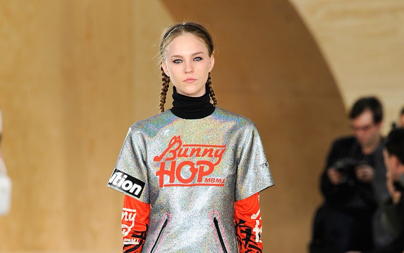 MBMJ, Marc Jacobs, Proenza Schouler, Opening Ceremony, Calvin Klein, and more showed turtlenecks of all forms, from ones layered under Dickensian sportswear (MBMJ), to printed ones worn with cocoon jackets (Proenza Schouler), to ones that even came up and covered part of the model's face (Calvin Klein). Now the reason that the turtleneck is such an awesome trend--other than the fact that it doubles as a scarf--is that it allows for reverse layering over it. Take the girls at Tommy Hilfiger's fall '14 show: With colorful and printed turtlenecks as a base, they could layer T-shirts, dresses, and light parkas on top. This is the good news for everyone part: With a turtleneck winter doesn't have to mean four months of sweaters and jeans, it can mean true sartorial freedom! (Insert air horn DJ sound here.)
