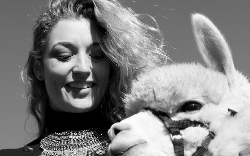 It’s a windy afternoon in New York’s Hudson Valley, and Alizé Carrère is trying to figure out how best to feed a herd of hungry alpacas without losing grasp of her free-flowing tunic. Just a few hours ago, the 27-year-old explorer was at the ophthalmologist, getting her eye lasered in an attempt to mend a detached retina, but now, Carrère is taking on her first magazine photo shoot, albeit still somewhat blind. “I’m really sorry if I’m flashing anybody,” she says with a laugh, before walking into the alpaca abyss.