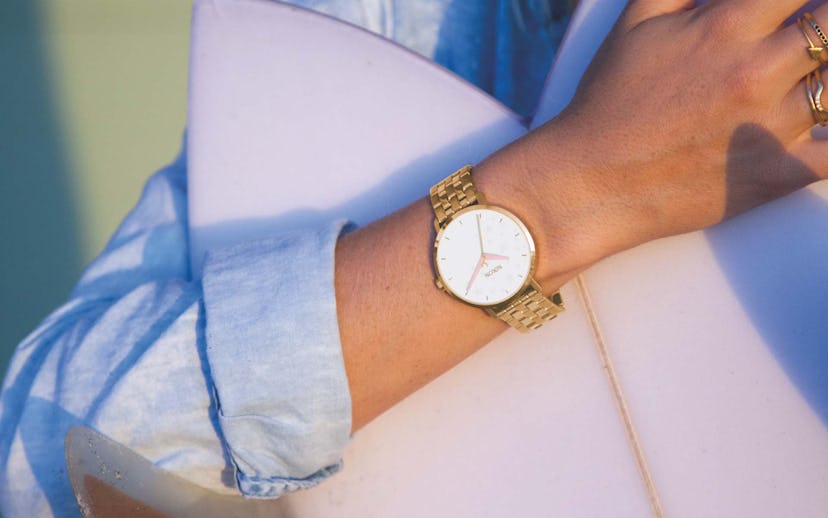 No one screams surfer-girl goals quite like Leila Hurst. The professional wave shredder has partnered with iconic watch brand Nixon to create a capsule collection of dreamy summer waterproof watches, featuring colors like millennial pink and rose gold, and a stars-and-moon-pattern face. Here, Hurst gives us the details on her collection.
