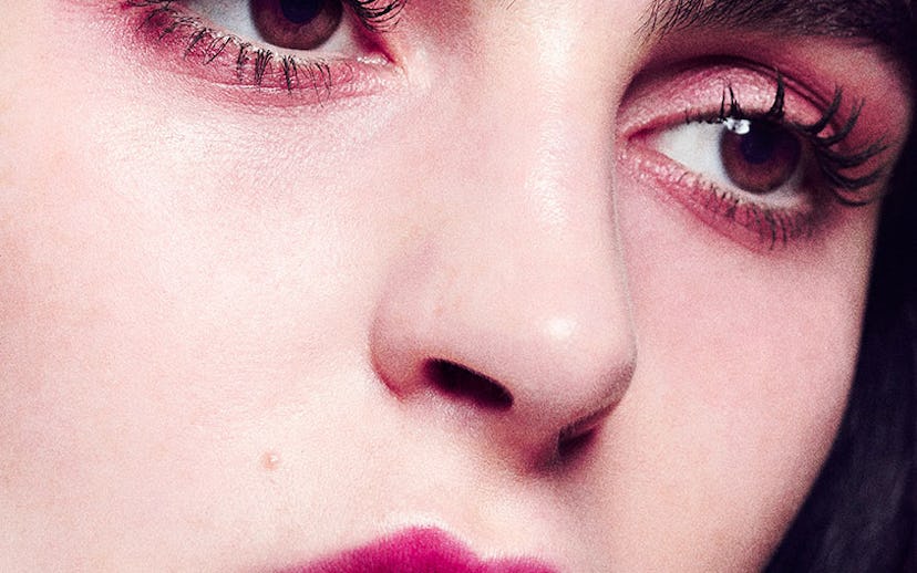 Prime eyelids with a wash of concealer as a base, and to cancel out any redness, follow by a dusting of translucent powder all over. Gently pat on NYLON’s signature hot pink shade in “Sweet 16," a beautiful bright matte pink on the lid up to the crease. Blend the edges out with a fluffy blending brush, then pick up “The Moment," a gorgeous shimmering champagne pink and continue to blend, taking the color just past the crease, creating a beautiful halo of contrasting texture.