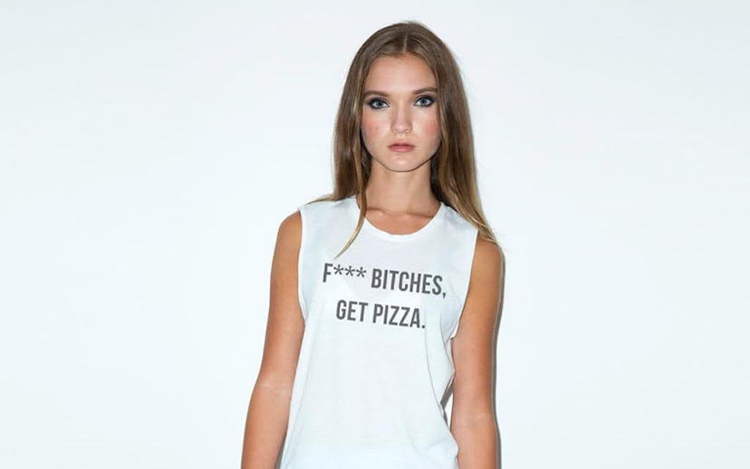 NYLON, F*** Bitches, Get Pizza Muscle Tee, $34.00, available here.