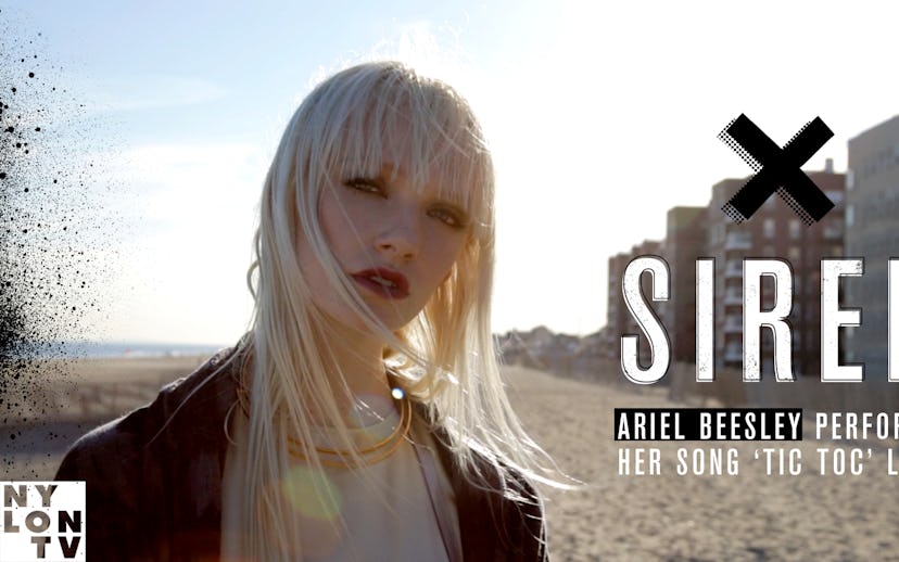 Ariel Beesley—a Wilhelmina model—performs her song 'Tic Toc' live along the beaches of New York City.