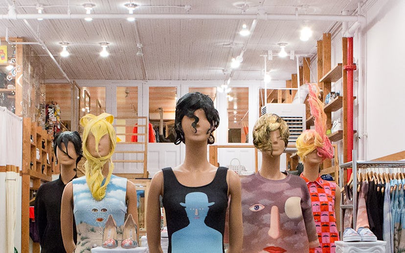 In addition to the collection, Opening Ceremony has also created an awesome in-store display featuring the line at it's SoHo location. Opening Ceremony founders Carol Lim and Humberto Leon said of the collab, "We are so excited to be celebrating the in-store launch of a capsule collection inspired by our favorite Belgian Surrealist, Rene Magritte. The relationship between art and fashion has always been an important focus for us, and this collection of 'wearable art', which calls attention to both popular and lesser-known works, is the perfect opportunity to showcase that parallel."