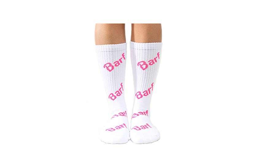And now I've got to let you in on a little secret here, because while I could have chosen plaid or smiley faces to adorn my ankles in the frigid cold, I chose Barf Socks. Why? Because I've started a new saying that's only caught on for...well, me. But if you want in on my little word fest, here's how it works: