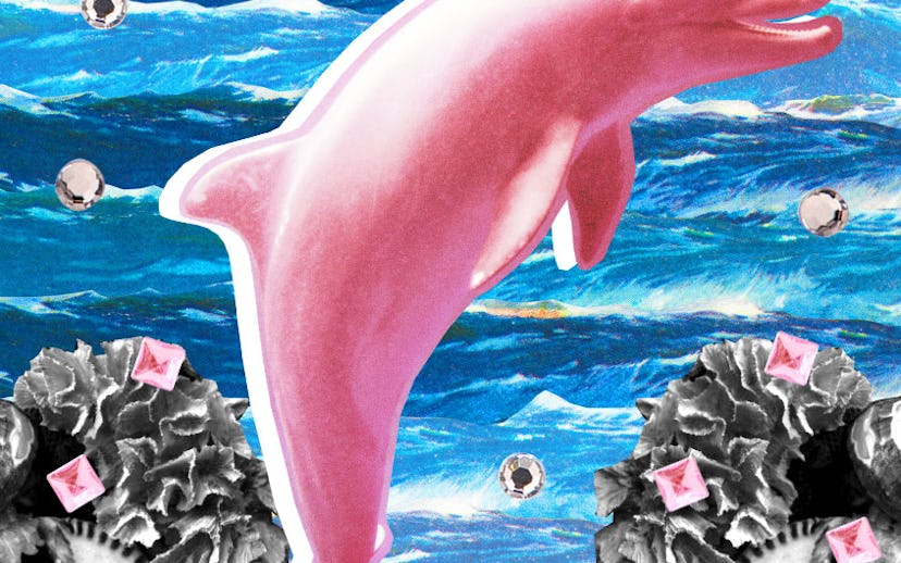 The dolphin, appropriately and adorably named "Pinky," was first spotted in 2007 in the Calcasieu River ship channel off the coast of Louisiana by Captain Erik Rue of Calcasiue Charter Service. According to Rue, what makes her color even more unique is that it covers her body from head to tail—even her belly.