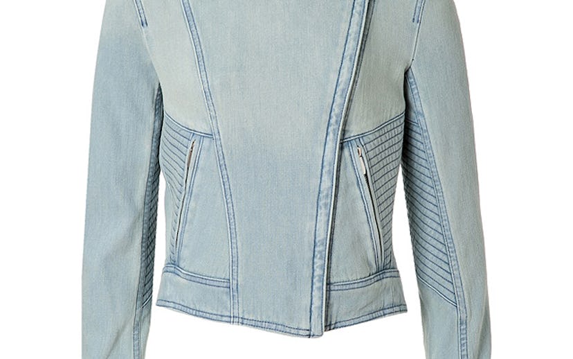 Quilted denim is the best way to spice up your denim routine because you can find almost anything in the fabric. Noncommittal fans can test out a quilted backpack, while other die-hards might find a full pair of quilted jeans the way to go. If you're looking for a more classic route, a moto-jacket with quilted sleeves and an asymmetrical zipper is sure to make you feel like one of Charlie's Angels, and nonconformists will love Nasty Gal's quilted "shorteralls" with chain straps. (It's like wearing a Chanel bag!)