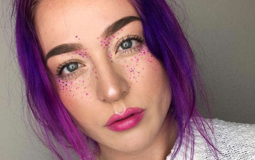 Back in November, we caught on to a random beauty routine that bloggers and makeup artists alike were obsessing over—faux freckles. We didn't immediately take to it at first, but now we're starting to see the cuteness appeal. Fast forward to 2016, and the beauty trend has already been upgraded with a bursting pop of color that makes it a little more fun and a lot less common—presenting rainbow freckles. Soon, you'll see beauty gurus everywhere placing dainty blue, pink, and purple speckles all over their faces a la Instagram. Makeup artist Dominique D'Angelo achieved the look by using Dose of Colors' liquid lipsticks. With this in effect, color is no longer limited to one’s eyes, lips, or brows.