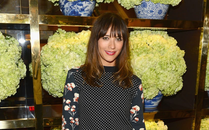 That's no reason to get down in the dumps about your wardrobe though, especially when you have Rashida Jones to act as your style inspiration. At the opening of Tory Burch's Rodeo Drive store, Jones paired a sweatshirt and skirt from the brand for a look that's as perfect on cold summer days as it is with tights in the middle of winter. Turns out the secret to making a sweatshirt look a little fancier is a printed skirt, cute sandals, and a classic satchel. (Jones' shoes and bag are from Tory Burch too, FYI.)