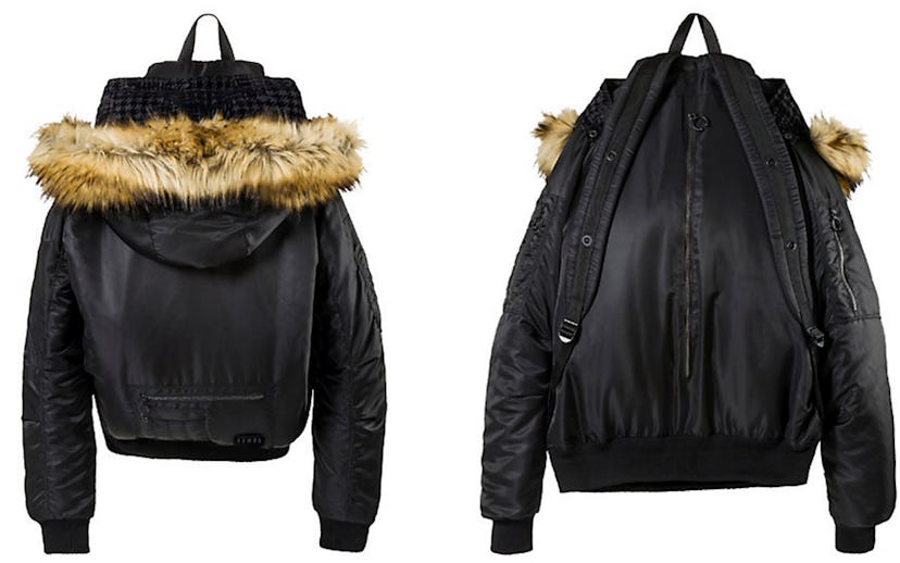 We can now add another item to the long list of fashion trends only Rihanna can pull off—which includes giant fuzzy red hearts, crystal bikinis, and wearing jackets like a disgruntled toddler. The "Bomber-Jacket Backpack" is one of the latest additions to the Fenty Puma collection, a collaboration between Puma and the "Work" singer, and it's quite possibly the most confusing, and maybe least useful accessory/clothing item we've seen in a while. Only RiRi can wear this jacket/backpack hybrid and not get weird looks. Your average person would look like someone battling a hangover who simply could not muster the effort (or remember) how to put a jacket on correctly.