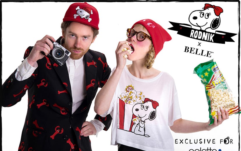 As you well know, Rodnik is the place to find the cutest Peanuts items, from a Lucy purse to a Snoopy sweater, so it makes sense the brand would be behind a line of adorbs products starring Belle. The collection of embellished tops, printed skirts, and popcorn T-shirts is pretty much what we want to make our springtime--no, our year-round uniform. (Is there anything better than a beaded eye-print dress?! We think not.) Adding to the awesomeness is the fact that the collection is modeled by Petite Meller, whose enfant terrible style is truly covetable.
