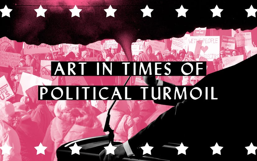 Art can be a scary word. It's entertainment, but it's also arresting. It's a vehicle for thought and can be a catalyst for rebellion. Times of political turmoil have spawned and been influenced by seminal works of art, like Eugène Delacroix's "Liberty Leading the People," Roberto Rossellini's Rome: Open City, and Pablo Picasso's "Guernica." Andy Warhol's Death and Disaster Series, too, was a commentary on the media's increasing coverage of violence and the subsequent desensitization of the public (and then further numbing via staring at Warhol's screenprints). It's through art that we come to better understand our place in history, engage with different ways of thinking, and reflect—that is if we allow ourselves to.