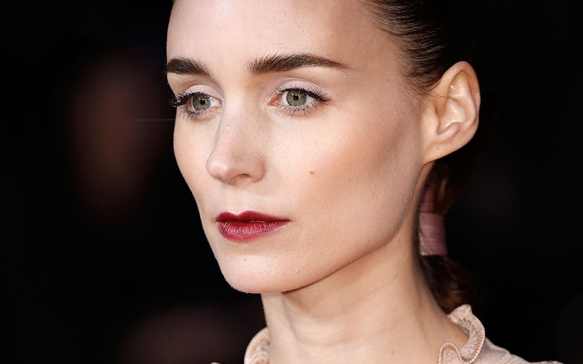 No, it wasn't because she wore a ruffled Alexander McQueen dress straight from the Paris Fashion Week runway under and a camel overcoat. It wasn't even her minimalist makeup palette or her crimson-colored lips that made her stand out among the other attendees. All eyes were on the back of Rooney's head, staring at her slicked-back locks twisted into a sleek ponytail that was intertwined with a baby-pink rope.