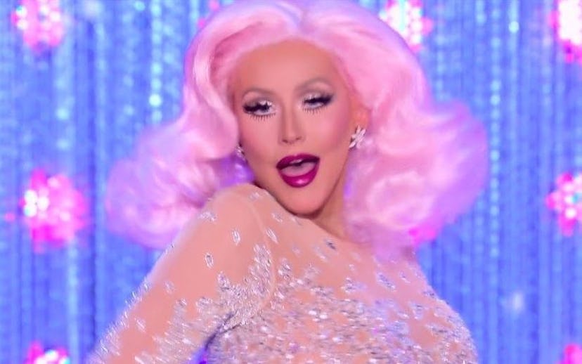 The brewing conflict was once again overshadowed when RuPaul introduced none other than Season 9's Farrah Moan—and, on cue, out came the signature cotton candy hair, neon pink fur throw, and a glitzy, curve-hugging dress. Except, "Farrah" turned out to be none other than the legendary Christina Aguilera, which was another fan favorite, especially seeing as how a fashion blog mistook Farrah for Christina at last year's DragCon.
