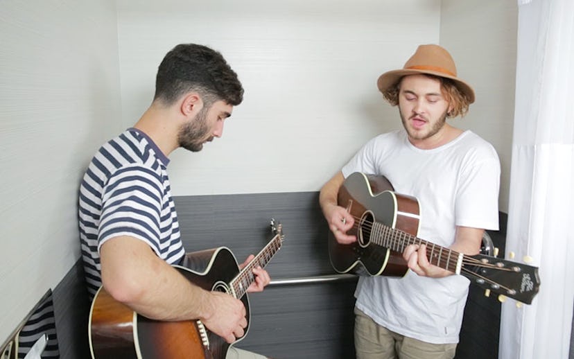Ah, the joyous pains of unrequited love. The desperate craving for another, the self-serving thoughts convincing ourselves that this person feels the same is enough to drive a person mad. It’s all fun and games, really. It’s also perfect fodder for a great song. Take San Cisco’s “Run,” for example: It’s an upbeat jam about some girl named Isabella who just wasn’t feeling the love—no matter how hard the guy tried. Perhaps an acoustic set, like the one San Cisco performed in a shower above New York, might’ve changed her mind. Isn’t that how all true romances begin in the movies?