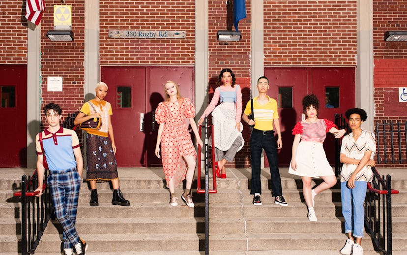 Clockwise from left: Ocean is wearing a Coach jacket. Fuji is wearing an & Other Stories shirt. Dominique is wearing a Valfre dress via NYLONshop. Max is wearing an ASOS shirt. Bri is wearing a High Heels Suicide jacket via NYLONshop, an & Other Stories shirt, and Target tee. Rori is wearing an Elie Saab dress. Diana is wearing a Sarah McCall shirt and her own overalls.