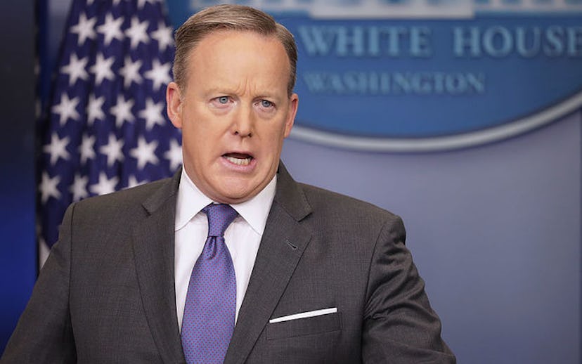 The 69th Primetime Emmy Awards had barely begun and already the night’s most talked about moment had gone down. During his opening monologue, host Stephen Colbert shocked the audience in the theater, and those watching on television at home, when he brought out Sean Spicer. Just like Melissa McCarthy’s caricature of him on SNL, the former White House press secretary rolled out on a podium and made a crack about the size of the Emmys audience. “This will be the largest audience to witness an Emmys, period, both in person and around the world,” he told the crowd. Get it? It was a reference to that time he lied to reporters about the size of Donald Trump’s inauguration on his first day on the job. Inside the auditorium, people laughed, but there were likely many more people who were cringing on the inside.