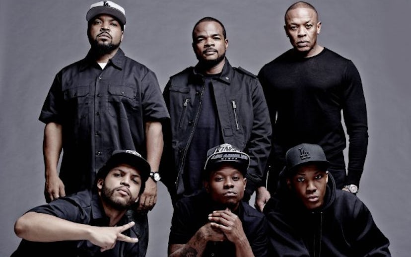 In it, a rapid-fire montage depicts the group's meteoric rise as they exported gangsta rap from the ghetto to suburbia. But with mo money comes mo problems, and the movie seems to say that success comes with just as many dangers as life on the streets. You get glimpses of the stories main players: Jason Mitchell as Eazy-E, Corey Hawkins as Dr. Dre, O'Shea Jackson Jr. as Ice Cube, and Paul Giamatti as the group's manager, Jerry Heller. And if the events depicted in the trailer seem a bit over the top, know that both Ice Cube and Dr. Dre executive produced the movie, to ensure maximum accuracy. Check it out below.