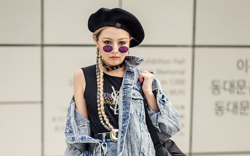 Seoul Fashion Week holds nothing back. No object is safe from being turned into an accessory. Binder clips? Put 'em on a hat brim. Suitcase fasteners? Turn that into a choker. It's a true lesson in mixing the highest of highs with accessible everyday items. It's about being fearless in adornment and really, honestly going there—wherever there may be for you. Seoul Fashion Week's street style stars committed. Here are the most awe-inspiring.