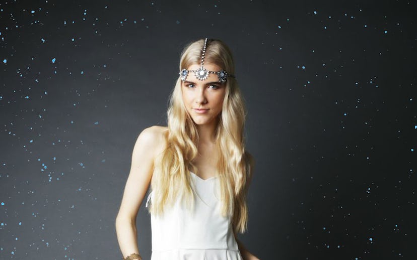 never fully dressed: sienna white jumpsuit—$95. 8 other reasons: comeback head-piece—$68. yru: sensei heels—$107. (available here.)