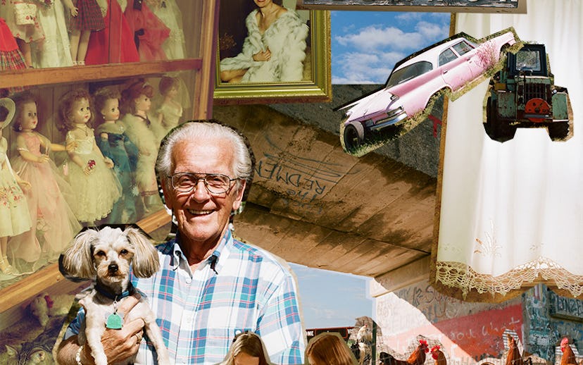 Inside their house, the walls tell the story of two devoted collectors. Not to be outdone, the top floor is Linda’s, with nearly every visible surface holding or in service of her incredible doll collection. “A woman came all the way from Hastings [Nebraska] to write about this one, she was so mad that I wouldn’t take it out of the case,” says Linda, pointing to her prized doll, permanently sealed in glass.