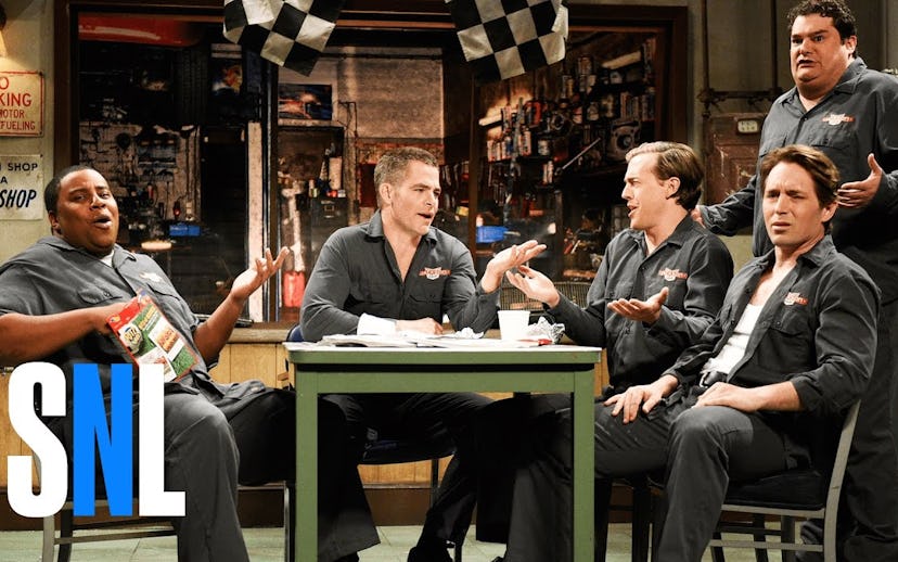 Had the sketch stayed in the real-men-don't-watch-RuPaul's-Drag-Race territory it would have quickly turned un-funny. But the pure delight of the sketch is watching how the men change almost entirely when it's discovered that their guilty pleasure is mutual. "Guys, who are we kidding?" a mechanic played by Keenan Thompson asks. "Let's just be honest. We watch RuPaul's Drag Race and we love it." Amen to that.