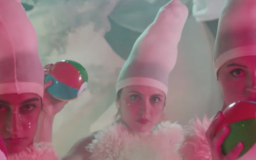 What, exactly, is a "snowy bing bong"? They are defined as pre-historic future lady creatures, whose arch nemesis is none other than... a beach ball. We know, it's a lot to take in, and you probably have a lot of questions about what, exactly, we're talking about here. But luckily, actors-writers-performers Sunita Mani, Tallie Medel, and Eleanore Pienta, the stars of the indie film Snowy Bing Bongs (produced by directors Daniel Kwan and Daniel Scheinert of the Swiss Army Man and "Turn Down for What" video fame), are here to explain it all.