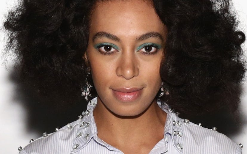 Brightly-colored eyeshadow gets a bad rap, and sometimes it's admittedly deserved. But not always, and Solange is proof that a statement-making glittery green shadow can be classier than you'd think. The singer has been everywhere this season during New York Fashion Week, but it's her look at Wes Gordon's runway show that really stuck in our brains. The key? Keeping it simple. Paired with a striped blouse and au naturale hair, who needs anything else when you've got an eyeshadow this bold? So forget all of those awkward '80s flashbacks (or prom makeup-gone-wrong memories) and see her secrets below.