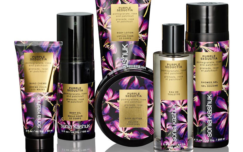 New to Kashuk's beauty oeuvre are four fragrances created in collaboration with perfumer Jerome Epinette of Robertet. The scents, Pink Innocencia (tuberose, magnolia, and amber), Purple Seductia (pomegranate, rose, patchouli), Yellow Alluriana (citrus, verbena, musk), and Red Promizia (sandalwood, jasmine, vanilla), are light and sweet-smelling, and come packages in hand-illustrated floral bottles. And yes, I've already spritzed myself with Red Promisia a couple of times this morning, because smelling of vanilla and jasmine is actually the best way to eviscerate those Monday blues.