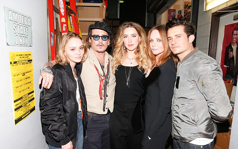 Lily-Rose Depp, Johnny Depp, Amber Heard, Stella McCartney, and Orlando Bloom.