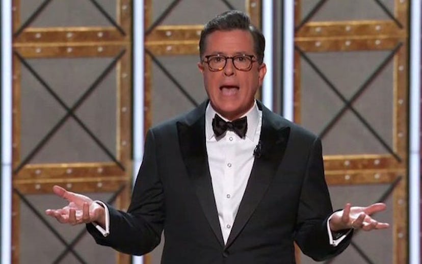 Opening up the 69th Primetime Emmy Awards with a musical number has become a bit of a trope in the past few years. Luckily, having Stephen Colbert as the host of the show meant that the cheery song and dance featured a series of political jokes amidst the two-stepping and tap dancing.