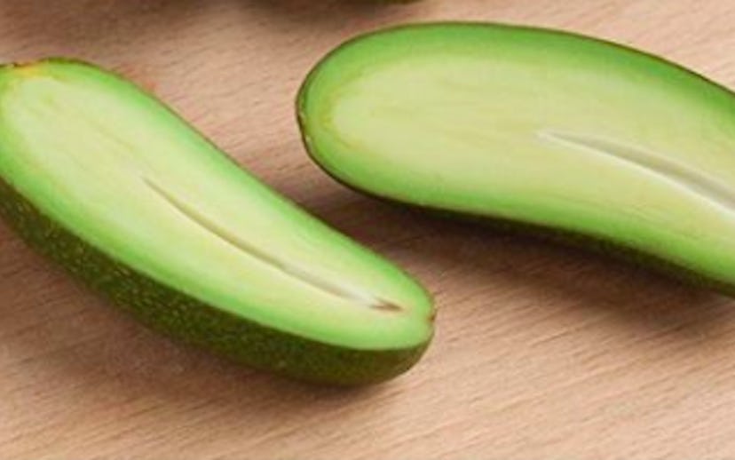 These seedless babies are called “cocktail avocados.” And on top of not having a giant stone in the middle, they also boast an edible skin, so you don’t even have to worry about peeling them. They're grown in Spain using unpollinated blossoms that grow without seeds, and are only available to harvest during the month of December.