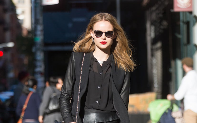 WHAT: Garrett Leight sunglasses, H&M earrings, Maje Purse, Helmut Lang jacket, Oak top, Avtandil skirt, and Schutz boots