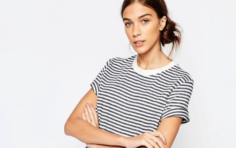 Every girl needs that one staple in her closet that can go with just about anything, and that can be dressed up or down. For us, it's the striped T-shirt. After all, what's better than a graphic print to layer underneath in winter and wear on display in the summer? Stock up on a few options to play with, or spend some extra $$ and invest in a good-quality tee that will last you for a long time. Whether you want to keep the same one forever, or if you want one just for a certain season, or even occasion—there're plenty of options to choose from.
