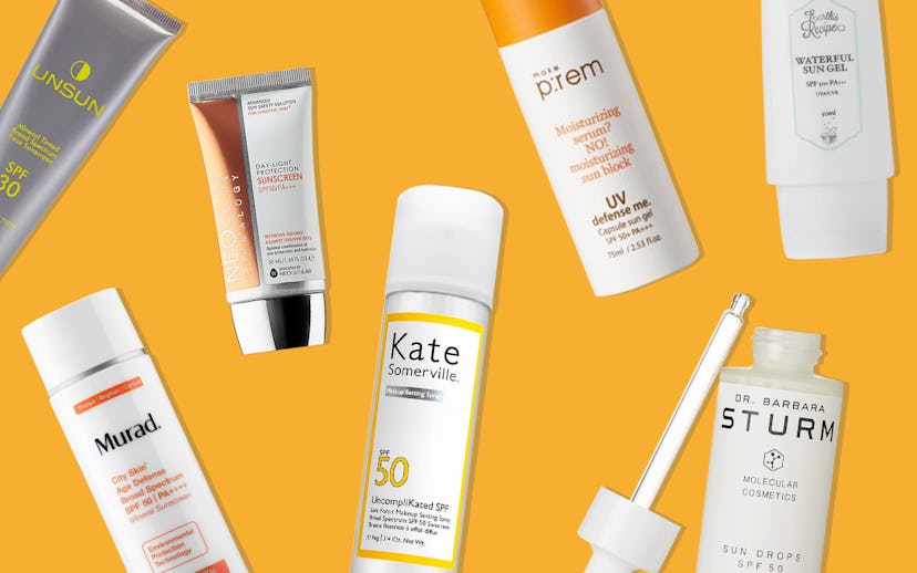 Spray-on sunscreens for the body are common. For the face, though, not so much. Kate Somerville's latest creation is tapping into that untapped market with its SPF makeup setting spray. The application process for this one is my favorite on this list, but I will admit it's hard to tell how much is coming out while applying because your eyes are closed. But the smell is pleasant and the convenience is great.