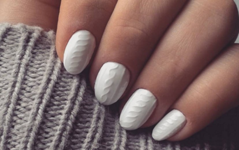 You run out into the snow-filled streets, straight to your nail technician. She gives you a look and motions for you to sit down. You don't say anything. She knows. She pulls out her gel manicure kit and gets to work, using a dotting tool to create the textured look of your dizziest daydreams. After opening yourself up to a substantial amount of UV radiation, you're ready to go back out into the snow. As you walk in the middle of road, you look down. You forgot to put on shoes before you left, but it's okay: You have your shellac nail art to keep you warm, and an intense need to knit.