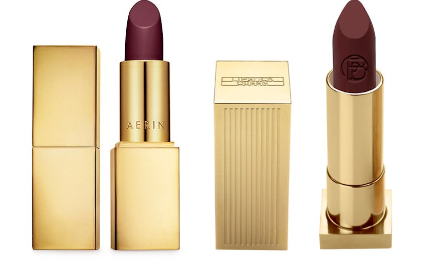 Finding the perfect dark lipstick is a lifelong quest that we rant about for hours, but instead we've decided to limit ourselves to experimenting with two of the coolest new lipstick releases from Lipstick Queen and Aerin. Both are dark, wine-hued shades, and come in shiny gold packaging, meaning that not only will they make your lips look pretty, but they'll also look pretty in your purse.