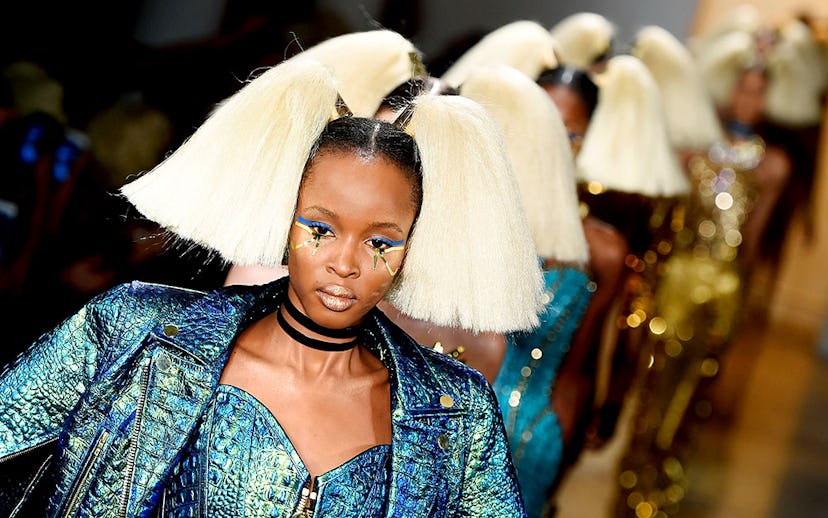 The fashion we've seen on the runways this month has, for the most part, managed to balance the aspirational with the accessible—the styles were elevated but we could still, quite easily, imagine ourselves wearing them. Not so with couture at The Blonds show last week—but, then again, that wasn't really the point. Nor is it ever with this brand: Known for custom-designed, crystal-covered corsets and bodysuits worn by the biggest names in pop culture (think: Miley, Bette Midler, and Nicki Minaj), The Blonds always go big in a way that only they can, and this season's collection did not dissappoint.