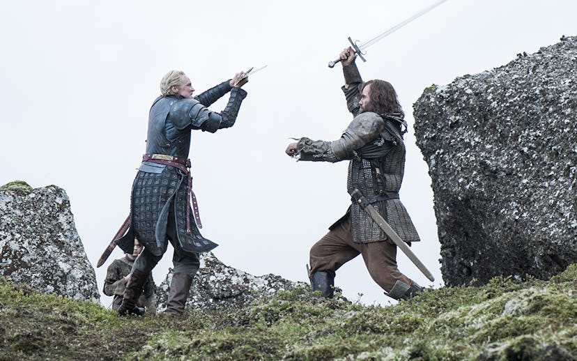 This would make sense, given that we never actually saw The Hound die. After losing the most epic one-on-one battle in the show's history to Brienne of Tarth, we (and Arya) left The Hound beaten and bloodied on the side of a hill. One would presume that he would eventually succumb to his injuries, hunger, or of a broken heart, after his surrogate daughter abandoned him. But we always thought it was an interesting choice to close out Clegane's storyline while he was still breathing. For such a fearsome and polarizing character, it didn't feel right.