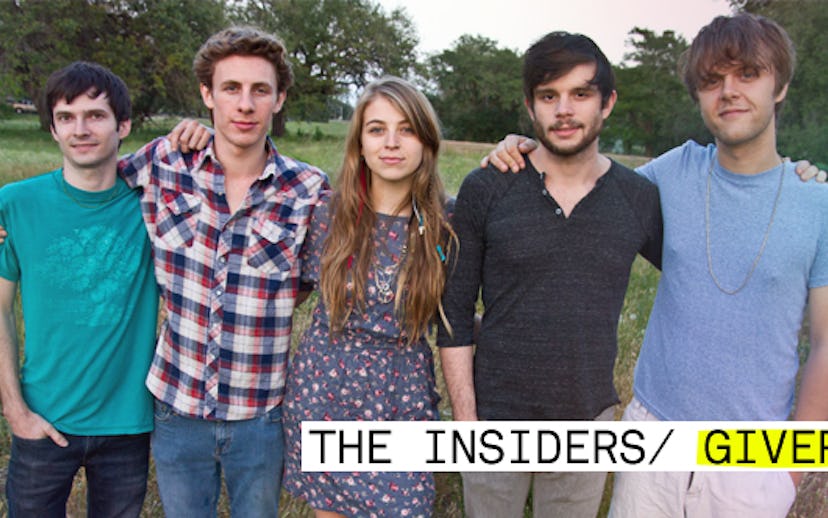 Meet Givers, the Louisiana six-piece who are determined to conquer your summer playlists with their new brand of eclectic, unabashedly sunny pop. We first crushed on them in March and recently spotlighted them in our new Music Issue, and for good reason: they're funny, talented, and can name the Dirty Projectors as some of their very first fans. Not bad for a group who, up until recently, were just as happy-go-lucky with their musical goals as they are with their sound. We grabbed a drink with the jokey band at New York's Ace Hotel and talked with them about their debut album, In Light. Check out the interview below, and see if you can tell when they're being serious...