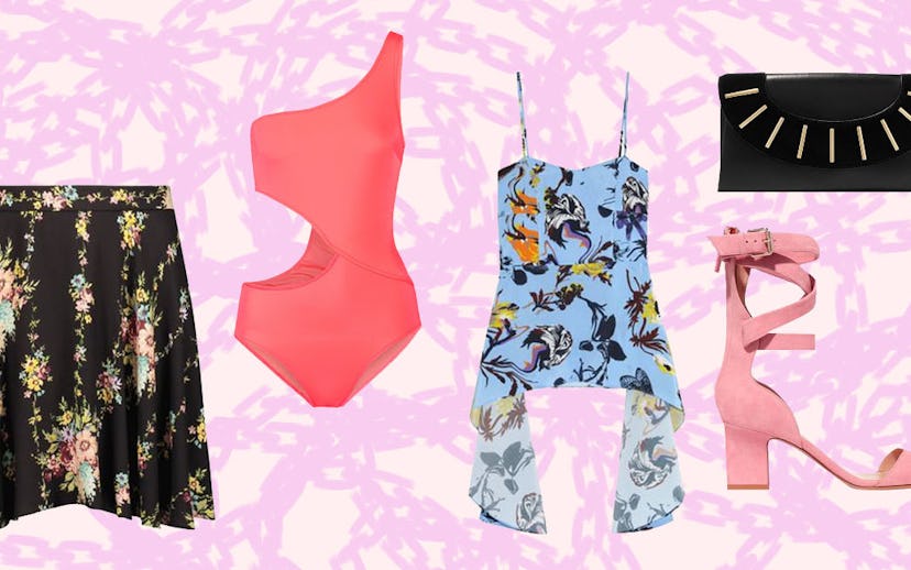 While we're still perfecting our cart, we rounded up 10 pieces that will definitely make the cut. From strappy sandals and bold swimsuits to floral prints galore, these pieces are the perfect wardrobe additions to help kick off summer.