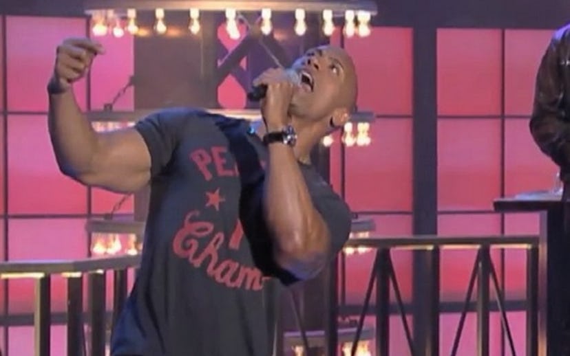 We didn't catch the show, but a clip going around the Internet this morning shows The Rock using his ample charisma and equally ample muscles to totally nail a rendition of Taylor Swift's "Shake It Off." You can see the show's host, LL Cool J, losing it in the background, and it looks like color commentator Chrissy Teigen is also the show's resident dancer.
