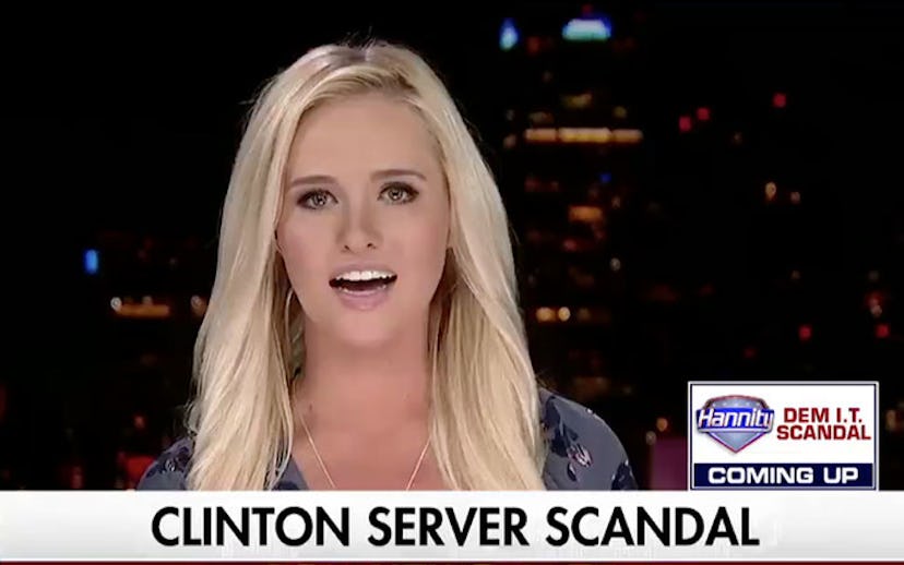 During her first day at Fox News, while our country is in the middle of a devastating natural disaster, Tomi Lahren chose to talk about Hillary Clinton's emails. After saying she has some friends who've spent time in Benghazi who would really like to know what was inside those deleted emails, she says, "How 'bout we make a deal? When the mainstream media stops covering Russia day in and day out, maybe we can drop the Hillary email scandal."