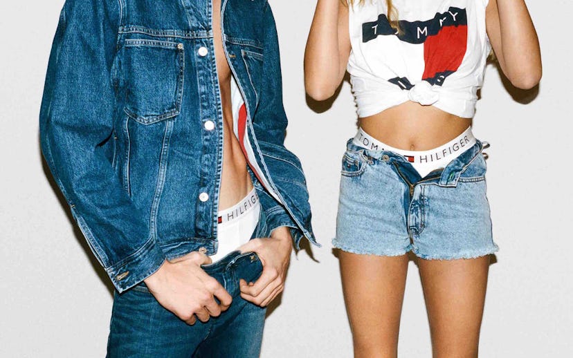 Tommy Hilfiger has announced the launch of Tommy Jeans, a Hilfiger denim capsule collection that celebrates some of the brand's most iconic styles from the '90s. The campaign stars none other than Lucky Blue Smith and Hailey Baldwin, who are photographed wearing fresh and modern takes on the classic styles that were so popular 20 years ago—think lots of light-wash denim and logo everything.