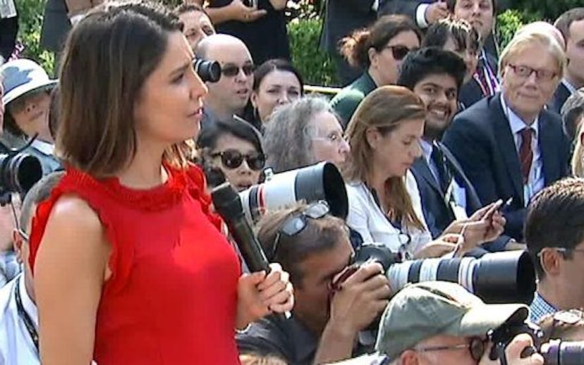 He then deemed her question, which was on the FBI investigation into Supreme Court nominee Brett Kavanaugh, as irrelevant to the new trade deal that the press conference was held for. "What does that have to do with trade?" Trump said. "I don’t mind answering the question. But, you know, I’d like to do the trade questions, too.” As Vega noted on Twitter after the exchange, "A news conference means you get to ask whatever question you want to ask."