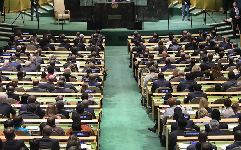 Any time Donald Trump claims to have done something well, it'd be really great if there was a cymbal hit to punctuate the hilarious idea that he's been productive, or positive. Guests in the audience at the United Nations on Tuesday, September 25, didn't need a laugh track or house band to get the gist that we're living in a dark comedic timeline. Trump gave a speech to the UN National Assembly about his accomplishments as POTUS, and the audience's reception was priceless.