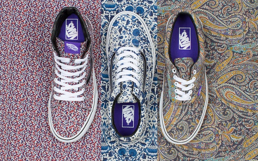 Vans and Liberty Art Fabrics have teamed up once again to create their Fall 2014 capsule collection. And this time around, the two design houses revisited some of Van's most iconic styles: The Old Skool, a midtop sneak, revamped by Liberty London's floral vine Lodden pattern; the Era outfitted by the Felix and Isabel fabric motif, which Zach Braff could have definitely used whilst filming Garden State; and the Sk8-Hi Reissue, which packs a floral punch with Liberty's Pepper print.