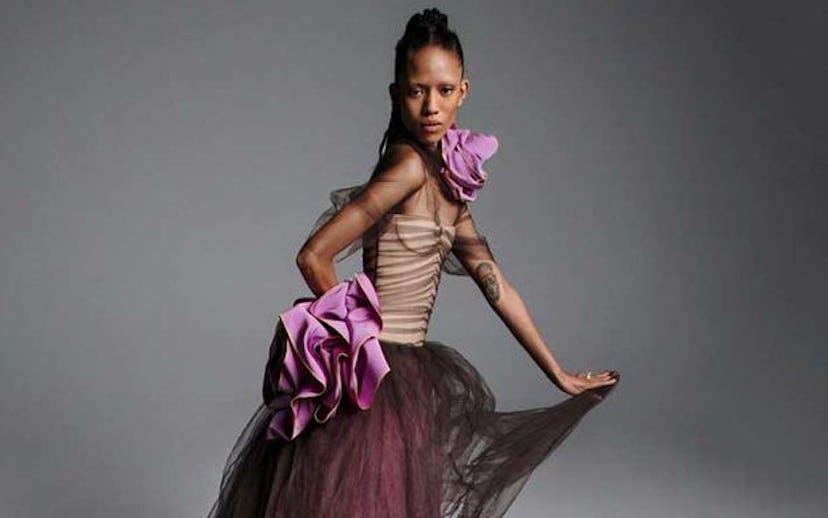 For Spring 2019, the iconic wedding designer is going back to her colorful roots, by putting out a collection that dabbles with every color of the rainbow—sometimes on the same dress. There is a ballgown that marries an asymmetrical pink bodice with a nude tulle skirt and forest green corset belt, and a beige-and-pink dress made edgy by a sheer black layer of tulle that covers it. Wang's aptitude for color is especially apparent in her beige styles, which make up the majority of the 12-piece collection and somehow feel incredibly fresh in an industry known for appropriating every white and white-adjacent shade.